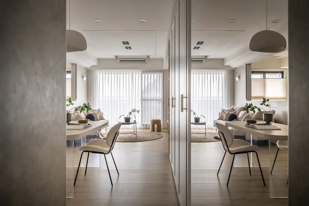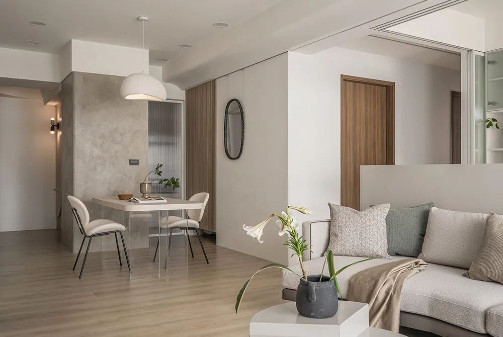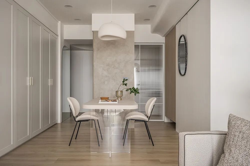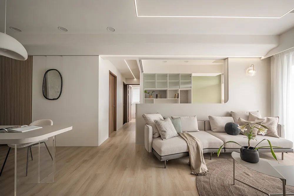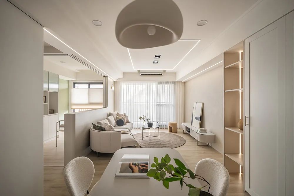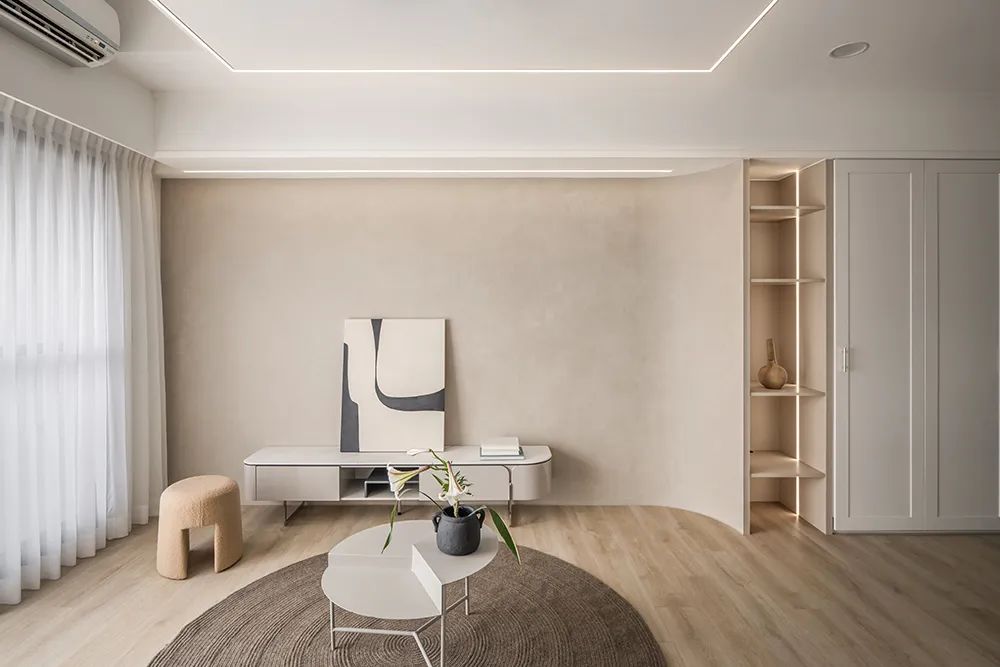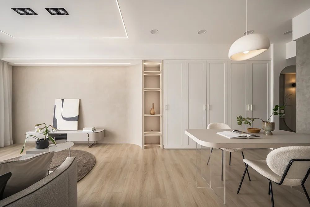 淡雅色調(diào)貫穿整體,既擴(kuò)展了視覺空間,又保證了每一處都能自由互動(dòng),回歸生活的本真與溫度。