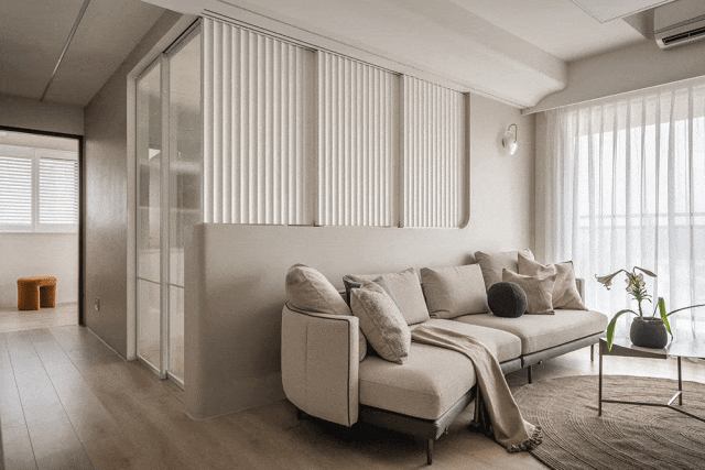 為提升空間感,特別拆除了傳統(tǒng)隔斷墻,采用玻璃材質(zhì)巧妙連接客廳與書房,讓光影自然流轉(zhuǎn)。