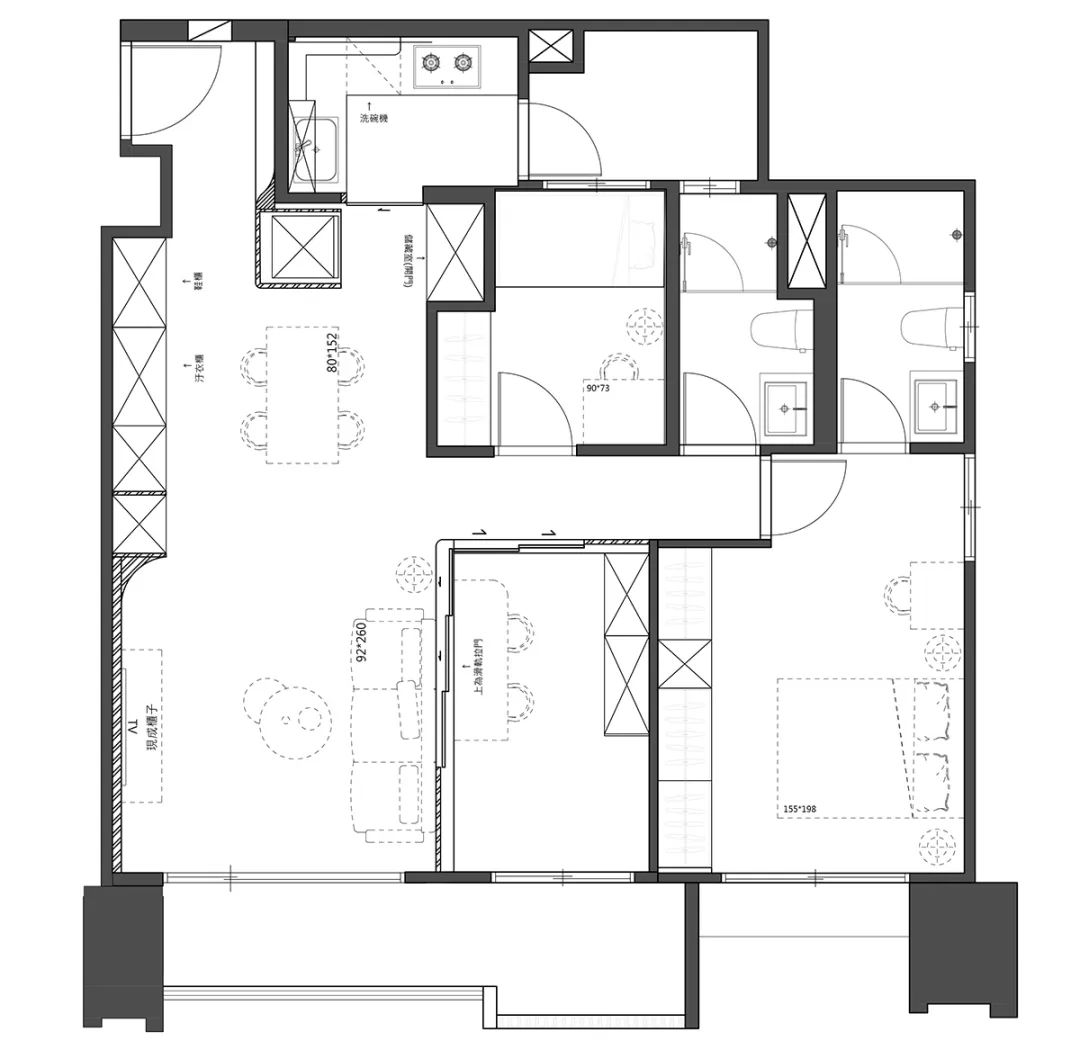 全屋以現(xiàn)代美式風(fēng)格為主,利用利落線條和精致材質(zhì),摒棄繁復(fù)的木作和過多活動(dòng)家具,營(yíng)造輕盈、開闊的氛圍。