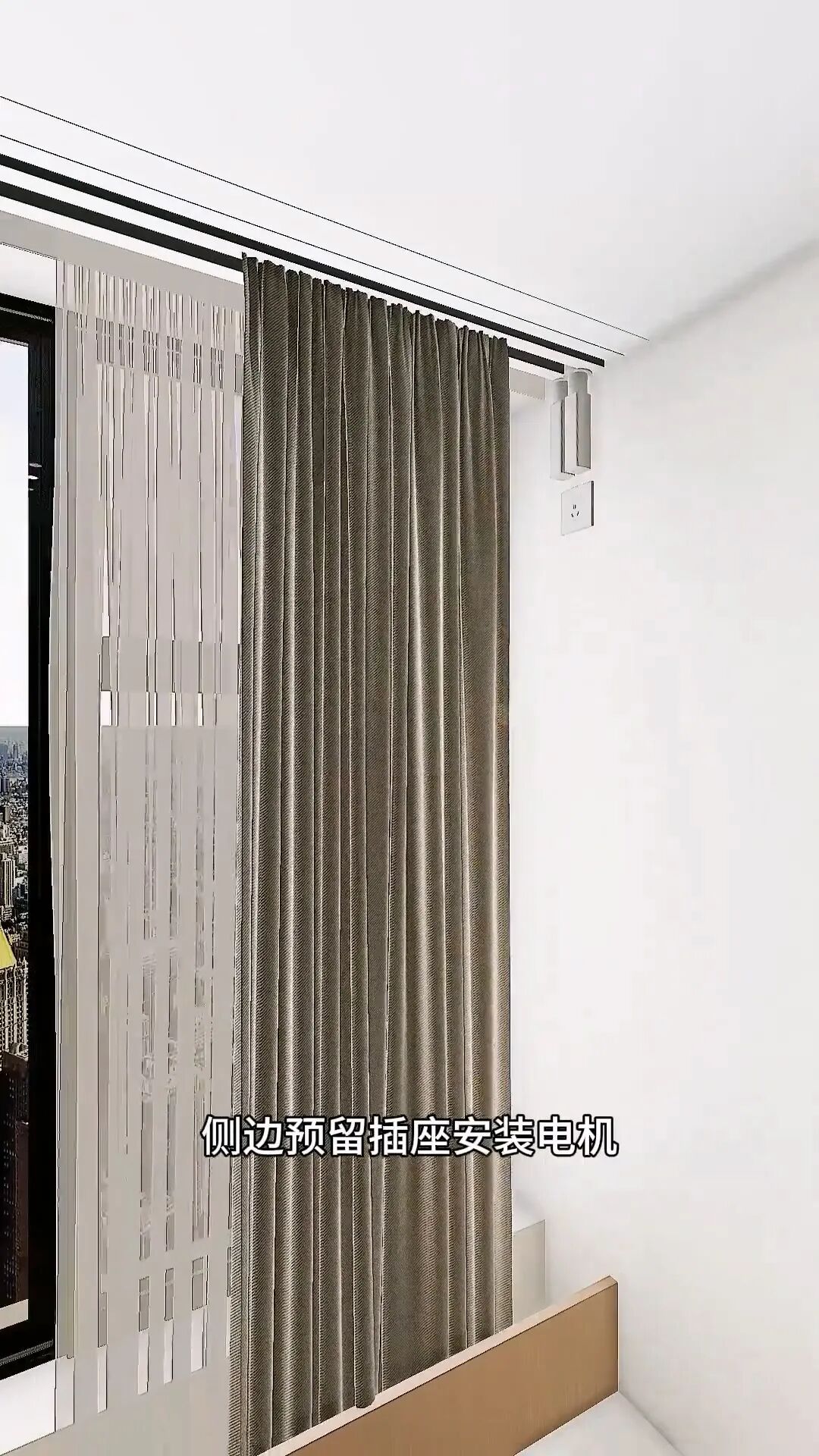 飄窗單獨隔出窗簾位,在飄窗里裝電動窗簾,側(cè)邊記得預(yù)留插座和窗簾電機,可以語音控制窗簾開合,不僅使用方便,還節(jié)省了室內(nèi)空間